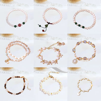 Women's Opal Strawberry Quartz Vintage Natural Freshwater Pearl Bracelet